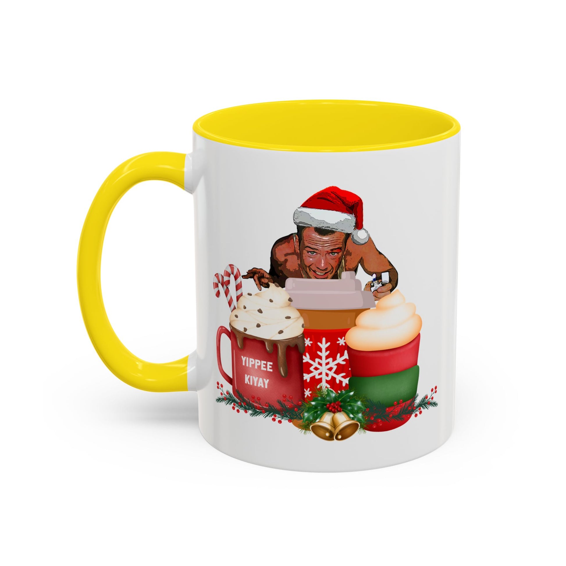 Cute Yippee Kiyay Nostalgic Movie Quote | Christmas Movie Fan Gift | Funny Christmas Gift| 1980s Nostalgia |11oz Accent Mug| 15oz Accent Mug