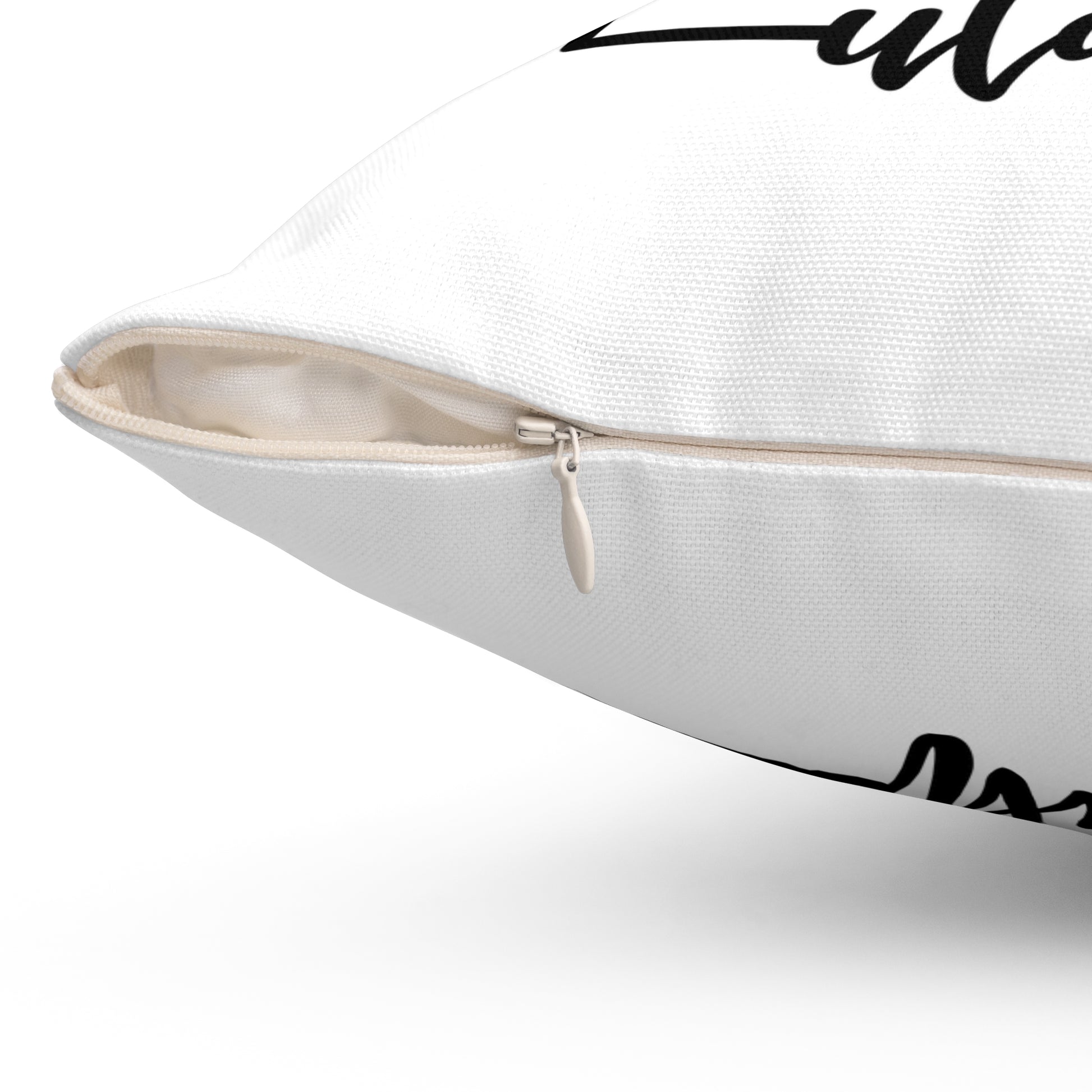 - Beige plastic zipper adds a stylish touch
